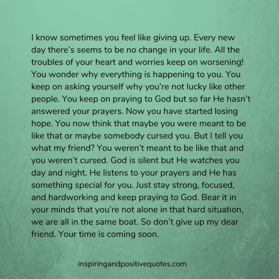 I know sometimes you feel like giving up. Every new day there’s seems to be no change in your life. All the troubles of your heart and worries…