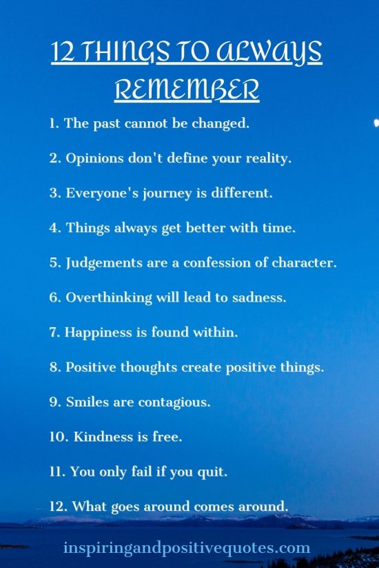 1. The past cannot be changed. 2. Opinions don’t define your reality. 3. Everyone’s journey is different. 4. Things always get better with time. 5. Judgements are…
